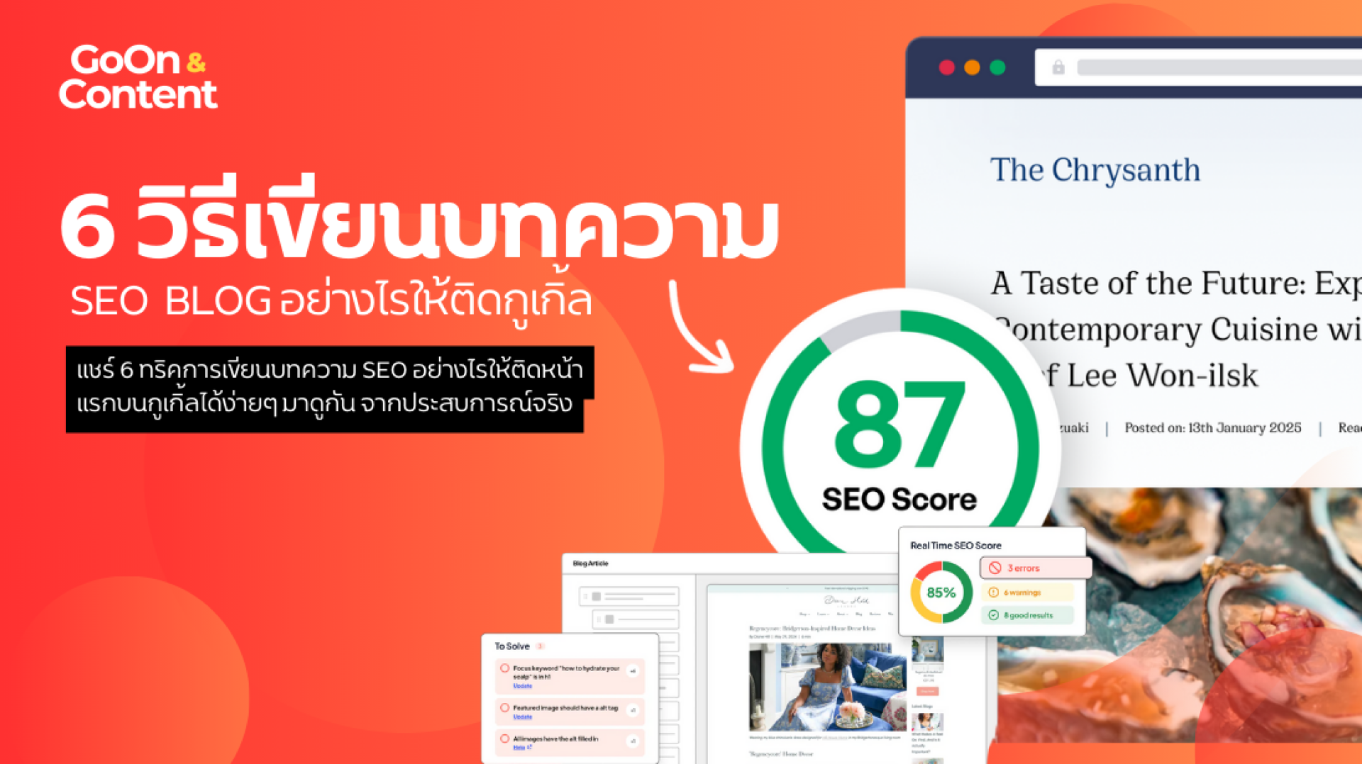 - 6 วิธีเขียนบทความ SEO อย่างไรให้ติดอันดับบน Google ได้เร็วขึ้น